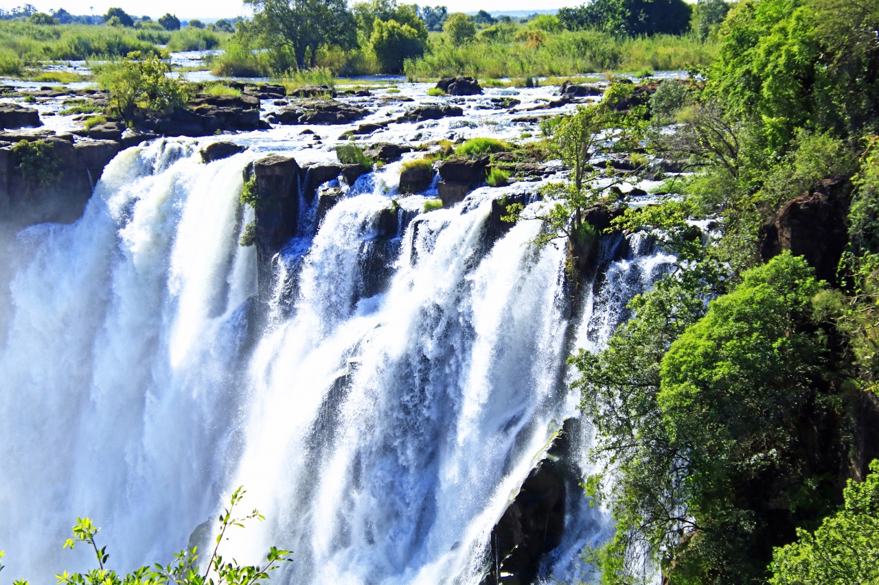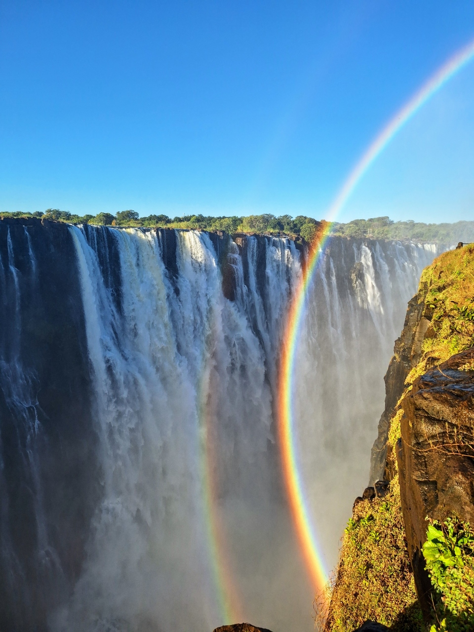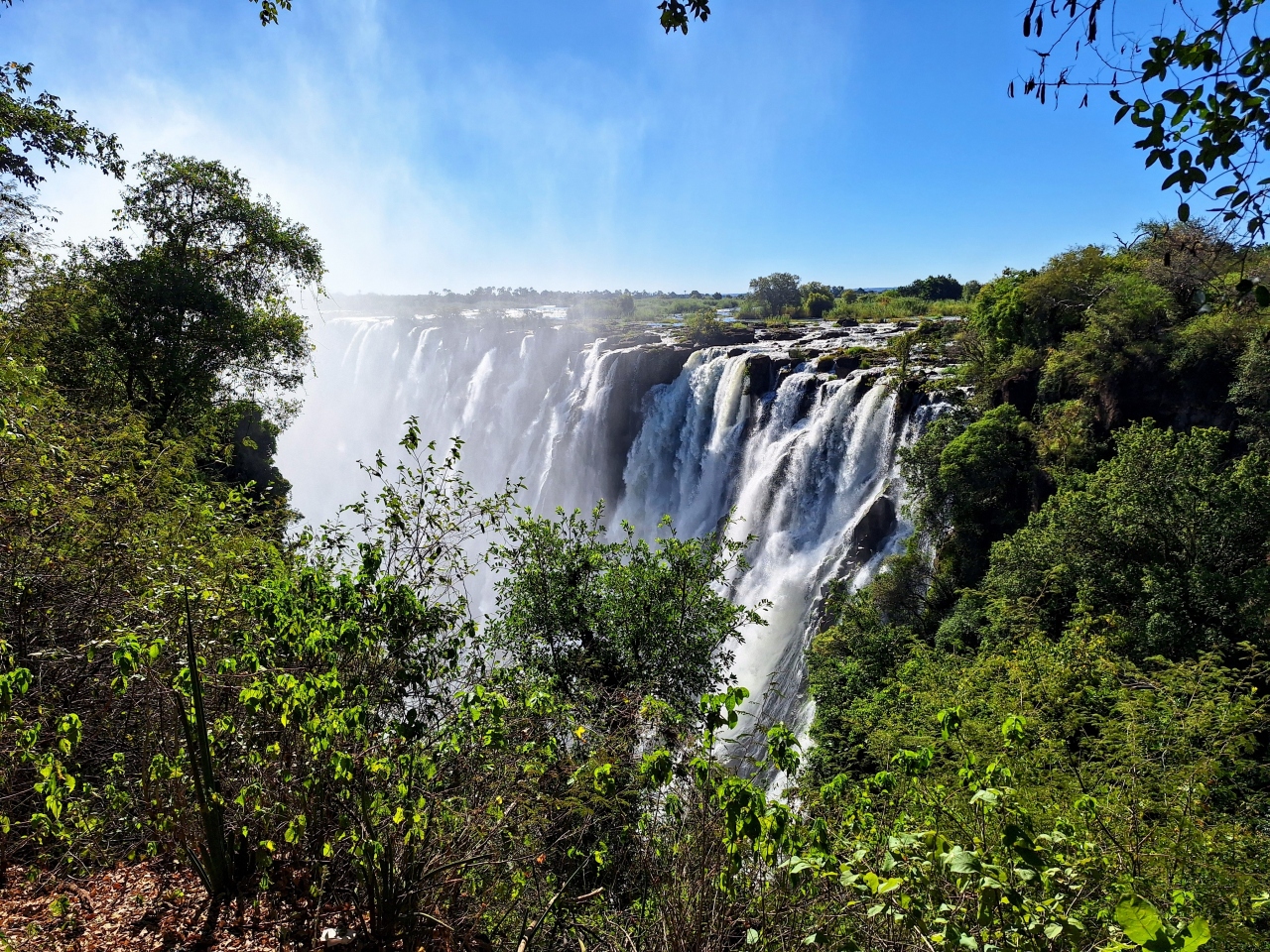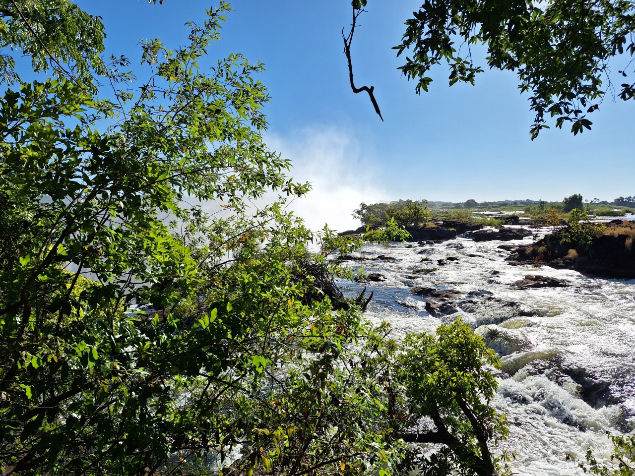 確かにジンバブエ側の滝に比べて規模は小さいですが、水量の多い時期は逆にジンバブエ側の滝は水煙が多すぎて曇りのようになってしまっており、景色的にはザンビア側のほうがきれいでした。