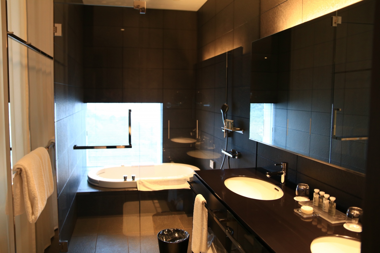 部屋は細かく区分されていますが、眺望を考えての高層階エグゼティブモデレートツインを選択しました。バスはビューバスタイプと通常がありましたが、バスで夜景を見る必要もあまりありませんので、通常タイプです。