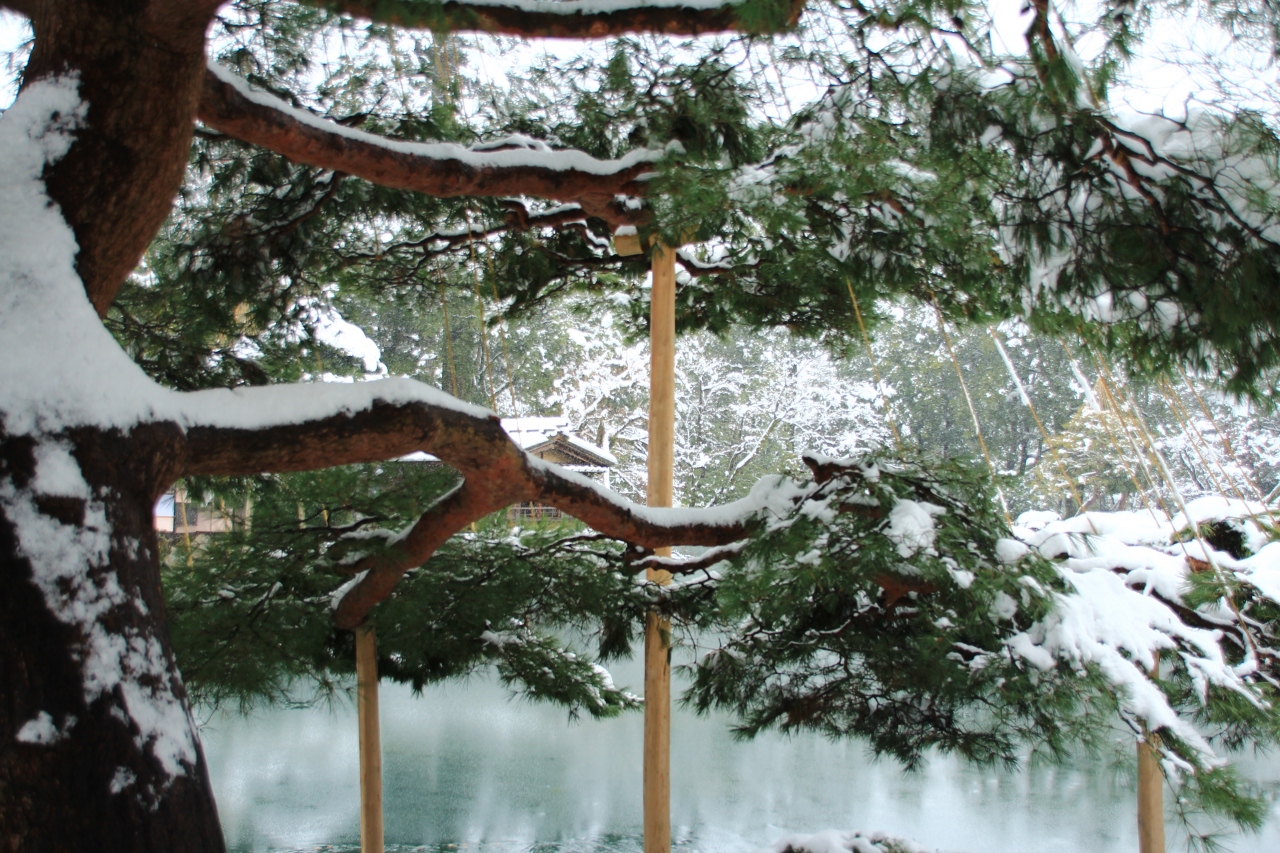年末から雪が多く、天気が回復したのでかなり解けてはいましたが、豪雪地帯であることは周りを見てもわかりました。その中でも歴史保存地区の街並みは雪化粧の風景ともあい、大きな家の庭には雪吊りの風景も見られました。