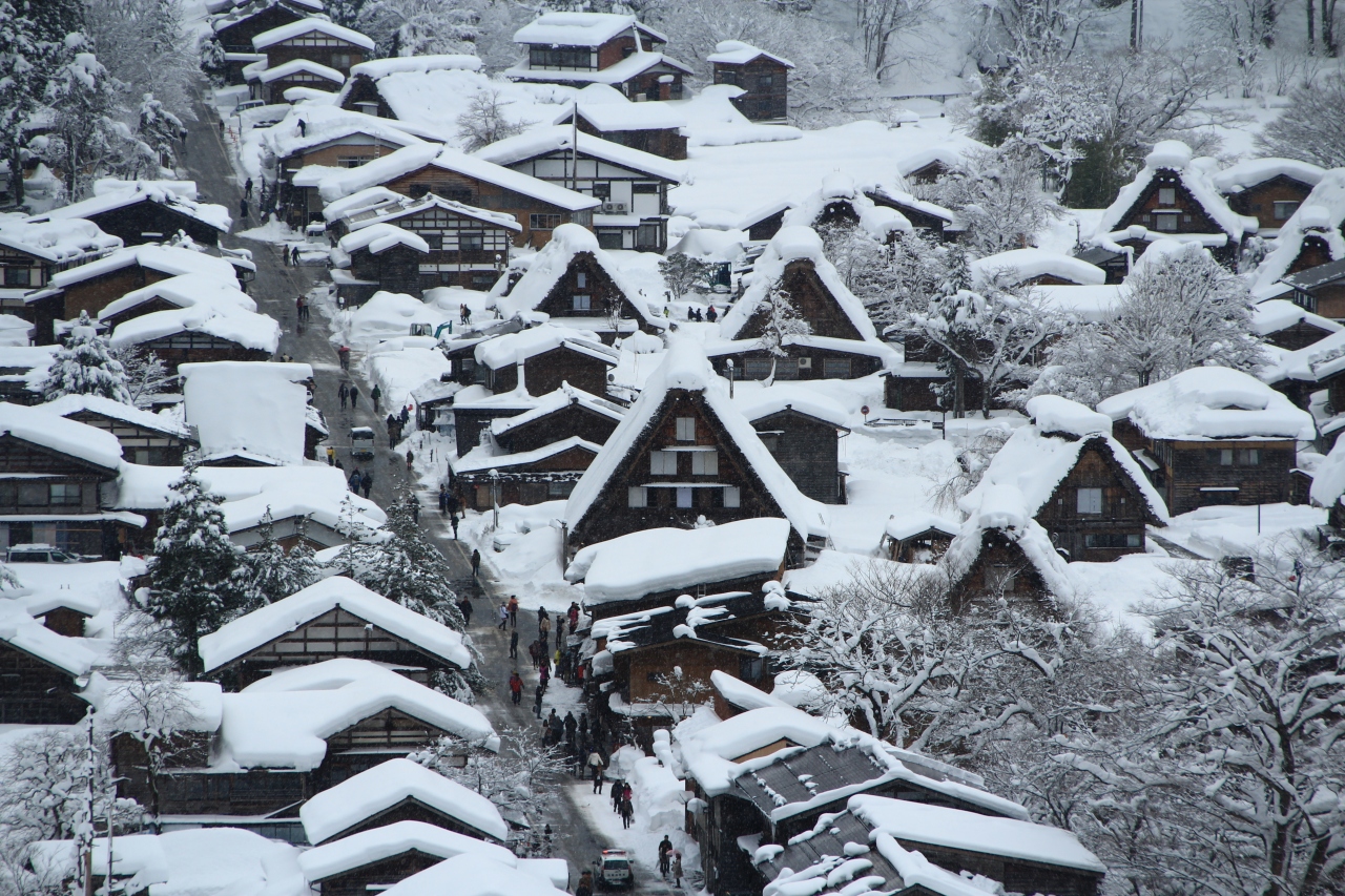 天候は雪が降ったりやんだりの状況でしたが、降雪量は多く、雪かきは大変そうでしたが、冬の合掌造りの昔話に出てくるような街並みが見れました。