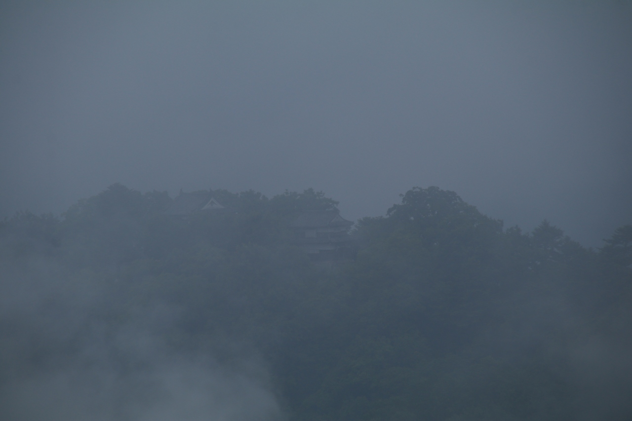 当日はあいにくの雨で、周囲の山にも雲や霧がかかるような状況で、逆に言えば雨天型雲海が見えるかもと思いましたが、ほとんど雲で、どこにお城があるか見えず。。。
