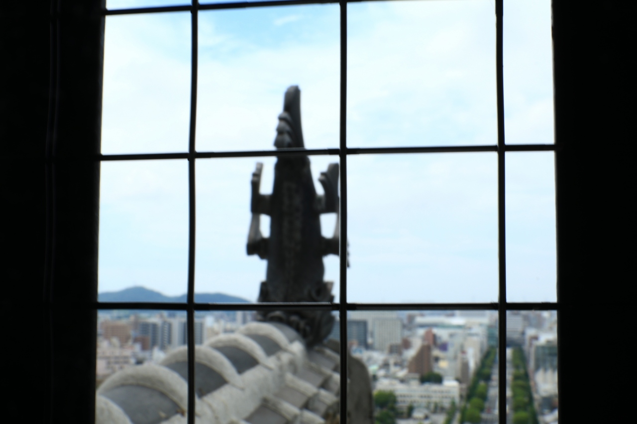 無料の展望台ですので、どのあたりに城があるか方向さえつかめず、とりあえず望遠レンズで写真を撮りました。