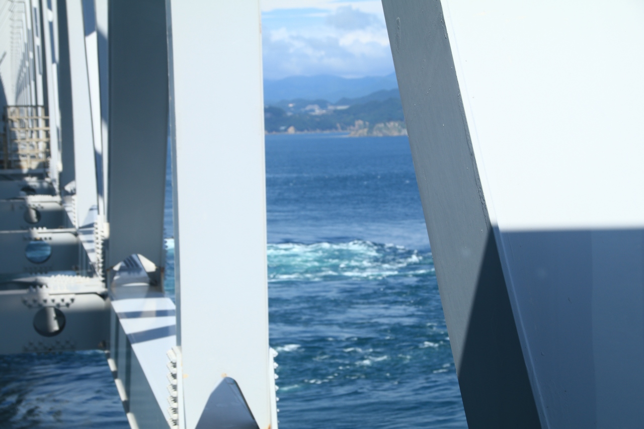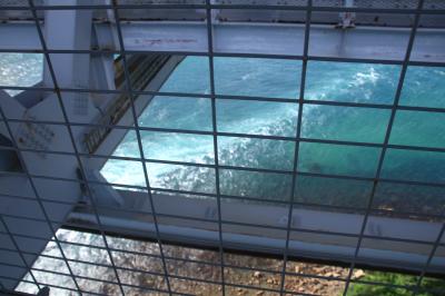 ちょうど私が立ち寄った時間帯は渦潮の発生している時期で、周囲の潮流の激しさも見えましたが、渦潮の発生場所は橋の真下。この場所は橋の構造物で見えない場所でした。周りの人たちもあと1ブロックあれば渦潮の上のあたりまで行けるのに、と残念そうでした。