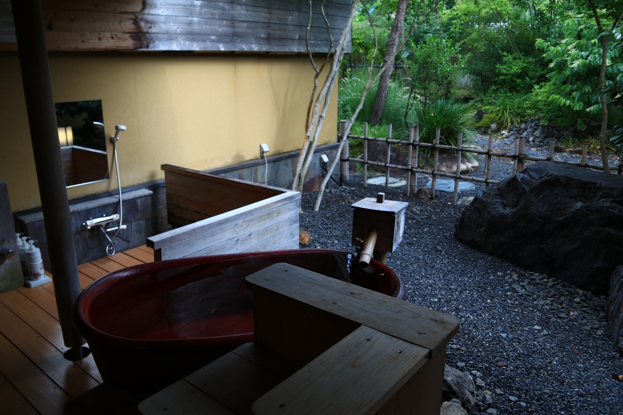 風呂は源泉が低いためか加温で、客室露天は残念ながらかけ流しではなく、ボタンを押すと20分ほど源泉が入り、水道のお湯で温度を加減するタイプでした。その分、大風呂は広く、源泉にあまり特徴はありませんが、ゆっくりできました。
