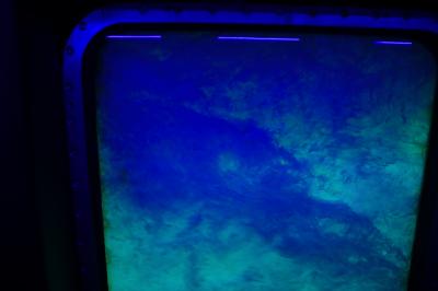 渦潮位置までは階下にある指定された座席で水中を見ますが、どこを通っているかわからず、おまけに狭いため移動はできません。