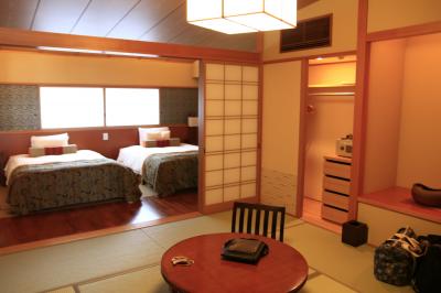 今回は露天ではありませんが、温泉付きの和洋室で、一部眺望が邪魔されるためかリーズナブルながら広いお部屋でゆっくりできました。
