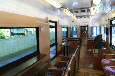観光列車というと、特急のような感じもありますが、こちらは通常列車に2両の特別車両を連結して、その特別車両が天空です。