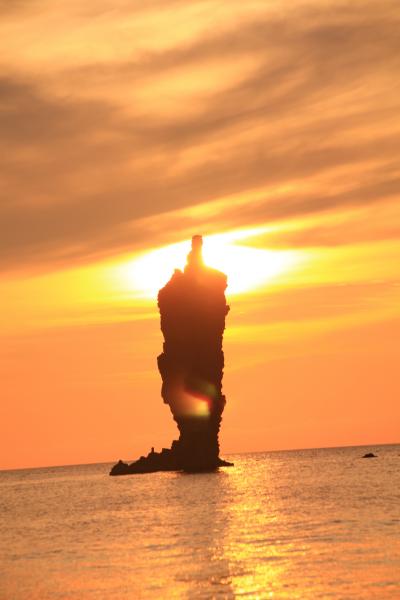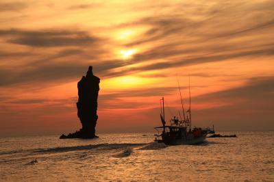遊覧自体はローソク岩をめぐってくるだけですが、夕日と重なるポイント、時間は限られているため、運も必要です。この日は遊覧船も多く、待ち時間もありましたが、ぎりぎり雲にもかからない景色が見れました。