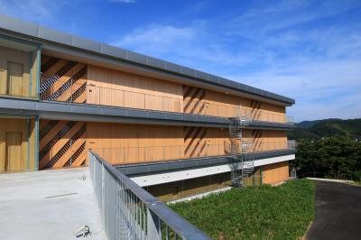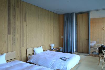 新館はエコに気を配って木を多用したお洒落な作りです。部屋も広く、風呂も独立で快適です。また、全ての部屋が海を向いており、大きな窓から一面に島前諸島や行き来するフェリーが見えます。