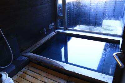 部屋付き温泉は最近のこじゃれた露天タイプではなくて、いかにも古めかしい湯治用の一人湯という感じでした。もちろん有名な大露天にも入りましたが、何分年末押し迫る中、大雪が降り、寒くて外にはほとんど入れませんでした。