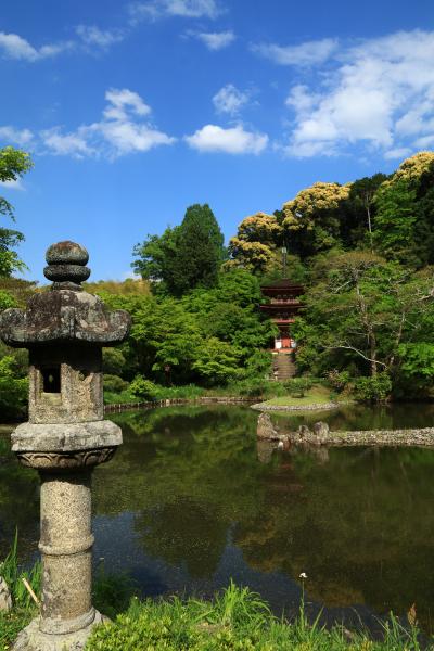 浄瑠璃寺は浄土を現した庭園と9体の阿弥陀如来が有名ですが、阿弥陀如来は2体が修復中でした。お寺へ着くと住職さんが寺についてじっくりと説明してくれました。
