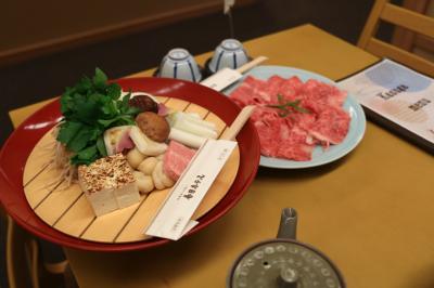 食事は併設しているホテルレストランでとりますが、しゃぶしゃぶ、すき焼きの両プランに分けましたが、十分すぎるくらいの量が出ました。