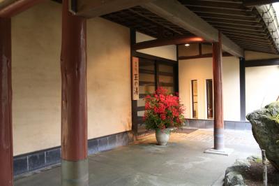 新宿坊は和室二部屋続きに檜風呂付の非常に豪華な部屋です。ただ、場所が金堂と広間の間で、窓の外は庭園と玄関前のため、昼は障子を開けられません。その代わり、夜は庭園が貸し切り状態になります。