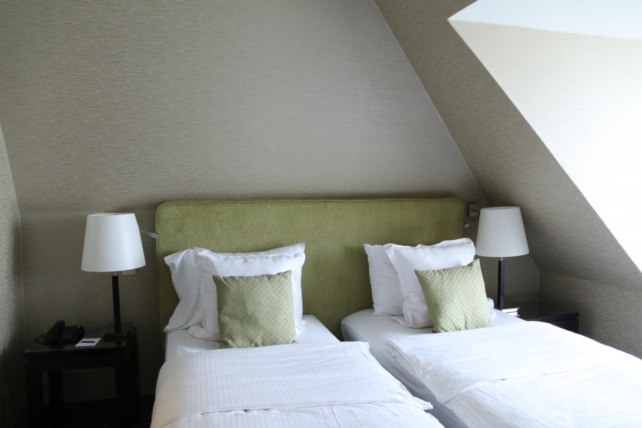 部屋はカテゴリー的には一番下のクラシックルームですが、カナルビューを選択したため、若干値段は上がりますが、4階の窓から運河だけでなく、聖母教会の尖塔まできれいに見えました。