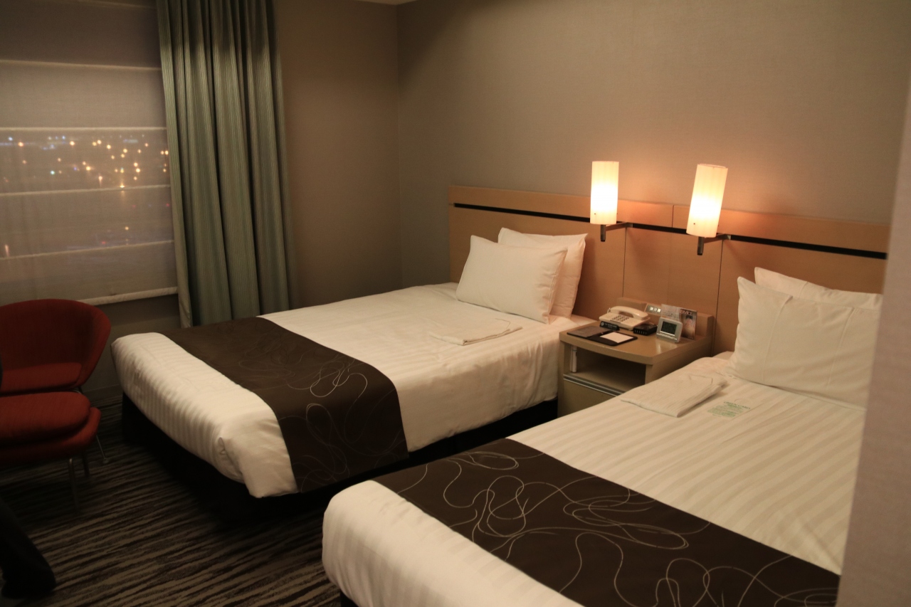 ホテルとしては普通のビジネスホテルですが、立地条件が良いため普通の部屋でも1泊12,000円/人前後と、空港から少し離れた前後泊向けホテルの倍くらいの値段がします。