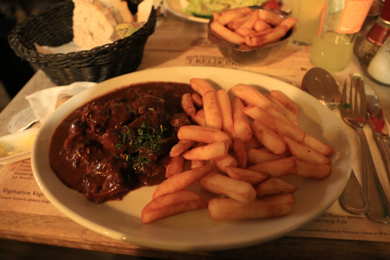 料理はベルギーの名物料理中心で、日本人はガイドブックのメニューを指させば注文できます。