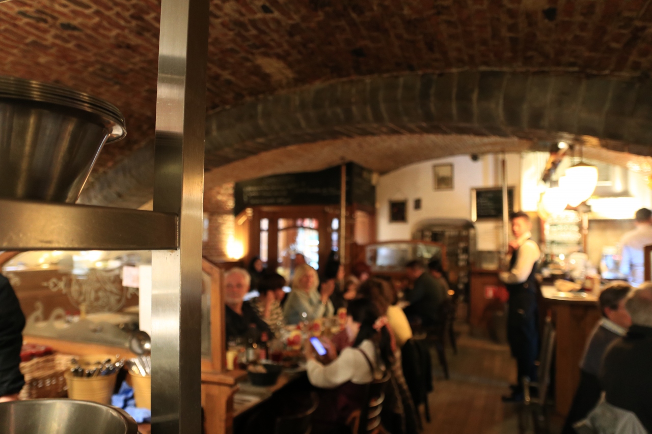 地階とテラス席があります。テラス席からはグランプラスが見渡せますが、4月末と時期的に寒かったため地階の席に座りました。