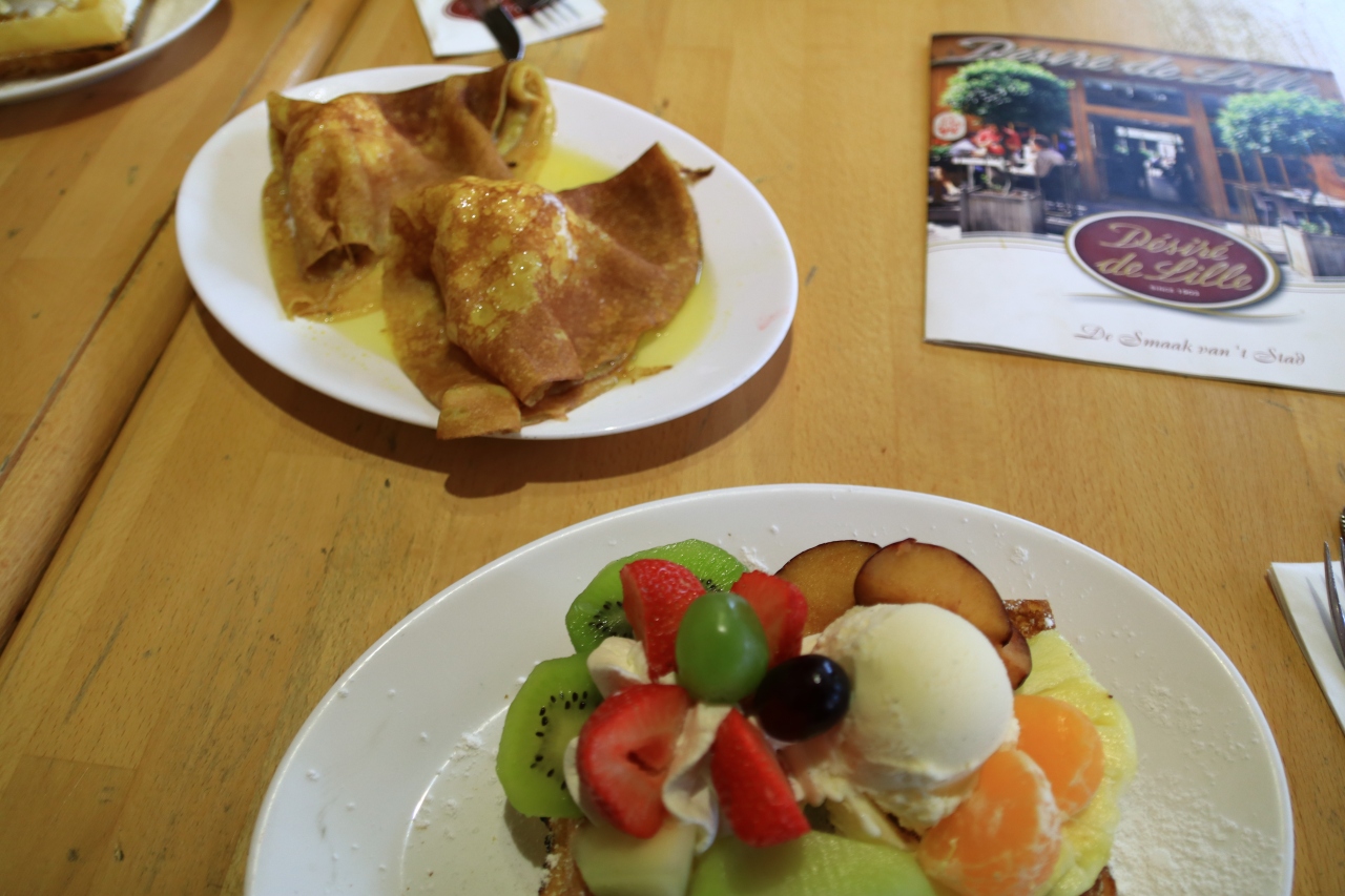 自分はガイドブックに載っていた、フルーツ全部のせのワッフルとパンケーキ(クレープ)を頼んだのですが、かなり量は多かったです。