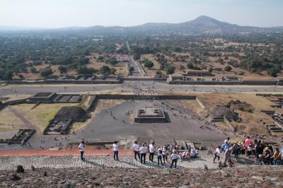 メインとなるのは街を突き抜ける大通りの死者の道と太陽と月のピラミッドが主な見どころです。特に太陽のピラミッドは頂上まで登れますので、遺跡が一望でき、広さを岱日間できます。