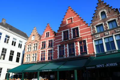 ブルージュのマルクト広場の鐘楼を正面に望むギルドハウス群にあるレストランです。
