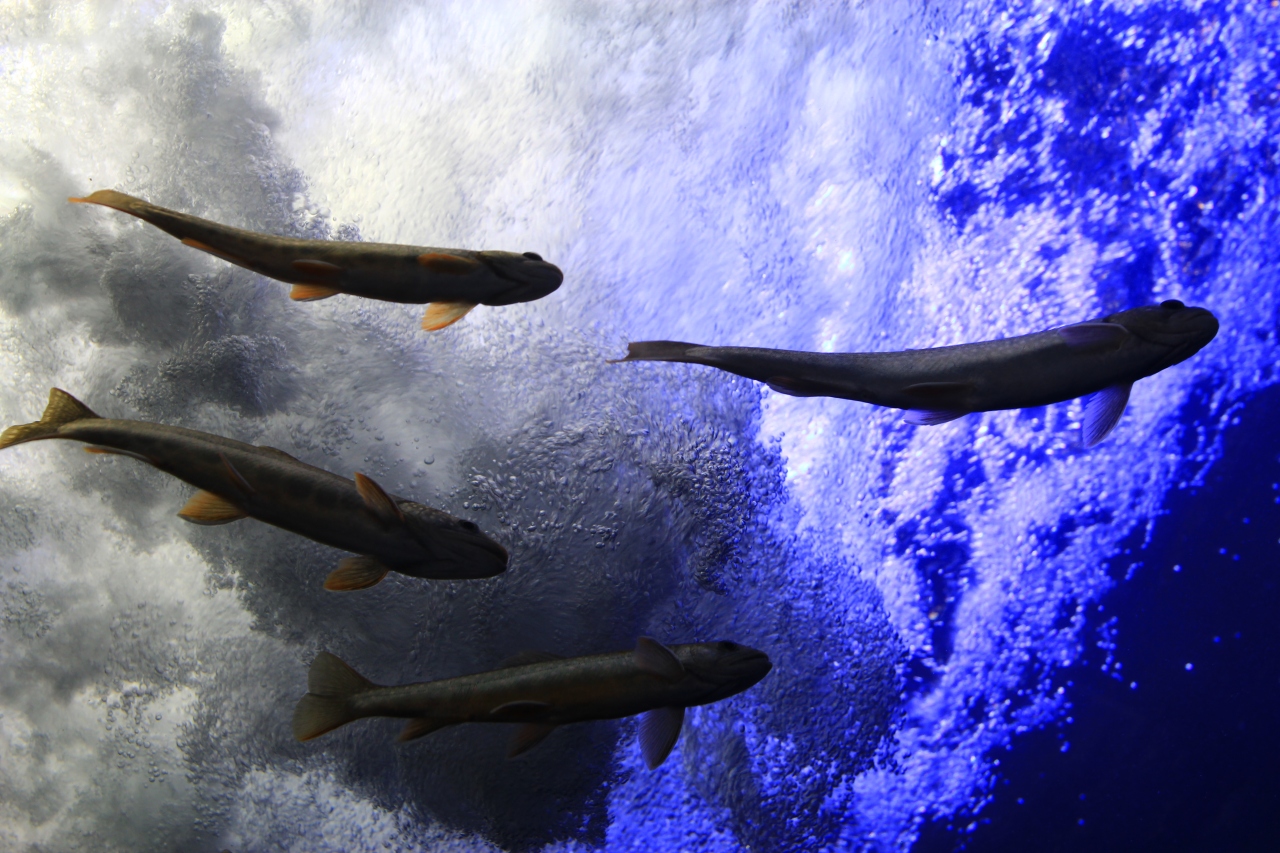 基本的に北海道に住んでいる魚を、気候や生態系に合わせて展示してあるという作りです。例えば氷が張る急流の中を泳ぐマスとか行動展示です。