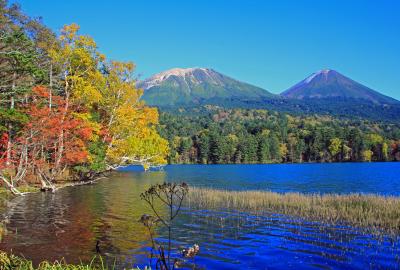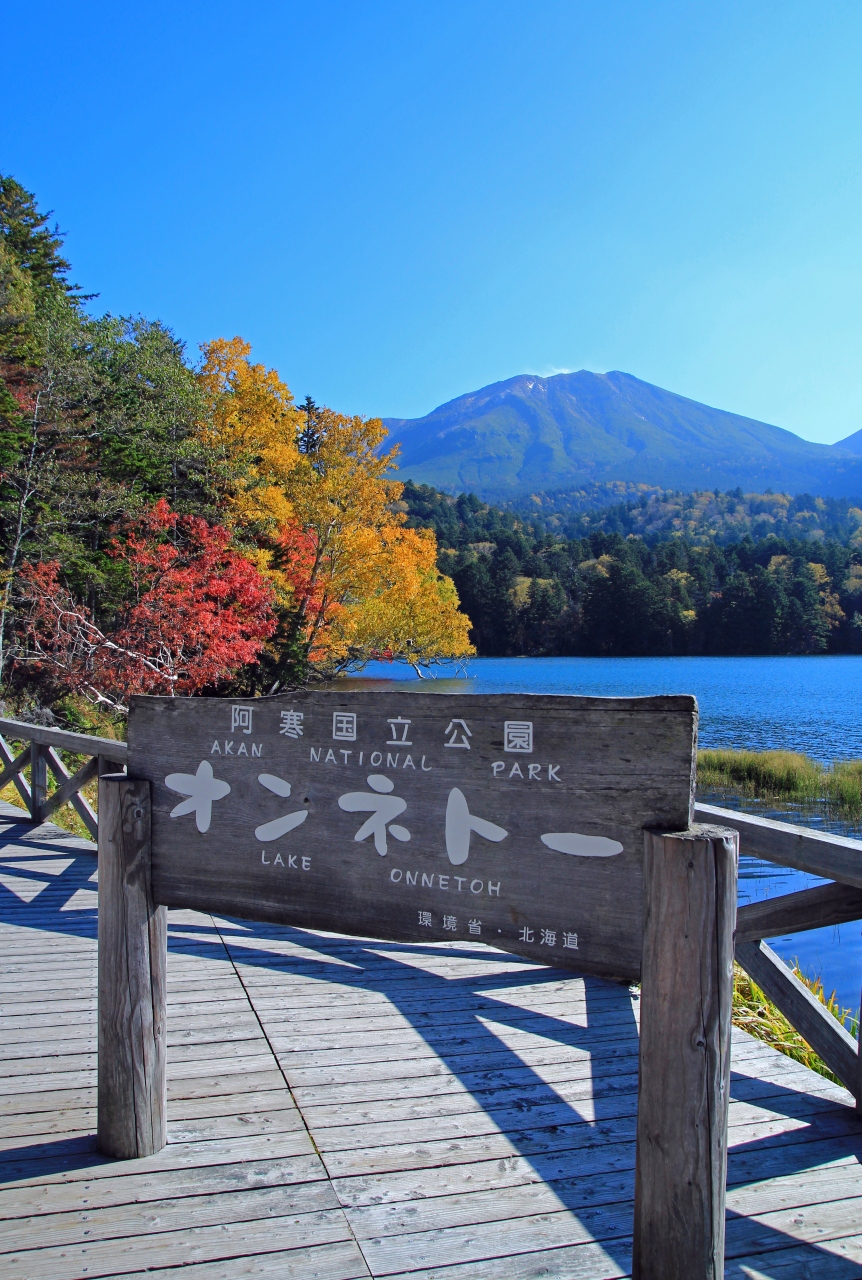 オンネトーは四季折々の美しさが見れて何度も訪れていますが、紅葉シーズンの展望台からの景色は雌阿寒岳、阿寒富士が目の前に見えて湖畔には色とりどりの紅葉と、絶景です。湖面の美しさもさることながら、秋晴れの青い空の下、赤・黄・緑と様々な色を見せる紅葉が美しいです。