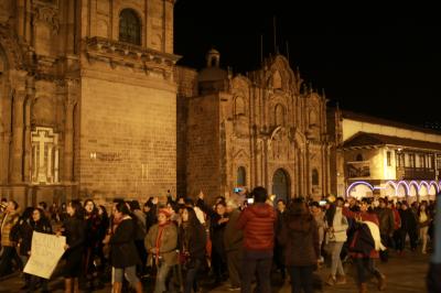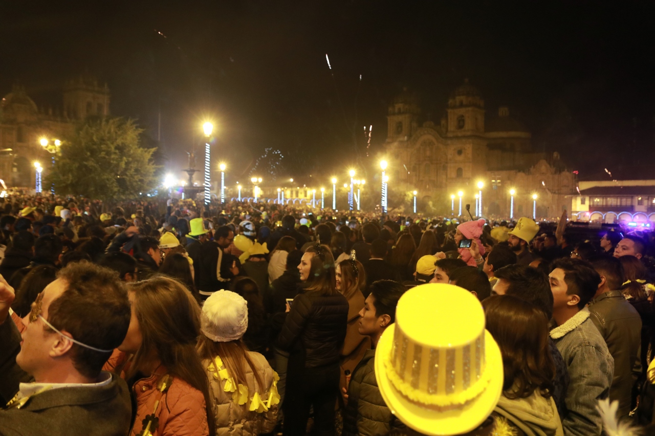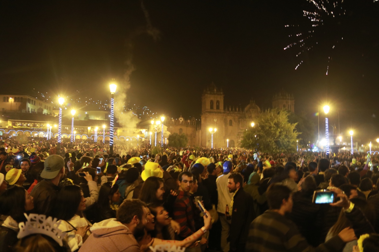 クスコの中心となるアルマス広場は夜9時過ぎくらいから人が集まり始め、新年を迎えるころには人でいっぱいとなり、年明けと同時に花火が上がり「ペルー万歳」の大合唱が始まりました。