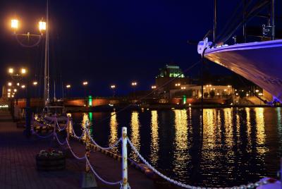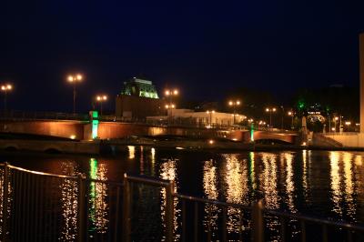 現在の橋は4代目だとかいうことで、車道2車線の大きな橋で、古風な風情はありませんが、夜になると街灯がともり、港の明かりとそれを映す釧路川という絶好のポイントとなります。