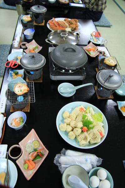 残念ながら温泉はありませんが、ここの目玉はカニ料理です。食べ放題ではありませんが、普通のコースでも食べきれないくらいの量が出てきて、最後の蟹つみれは残してしまいました。