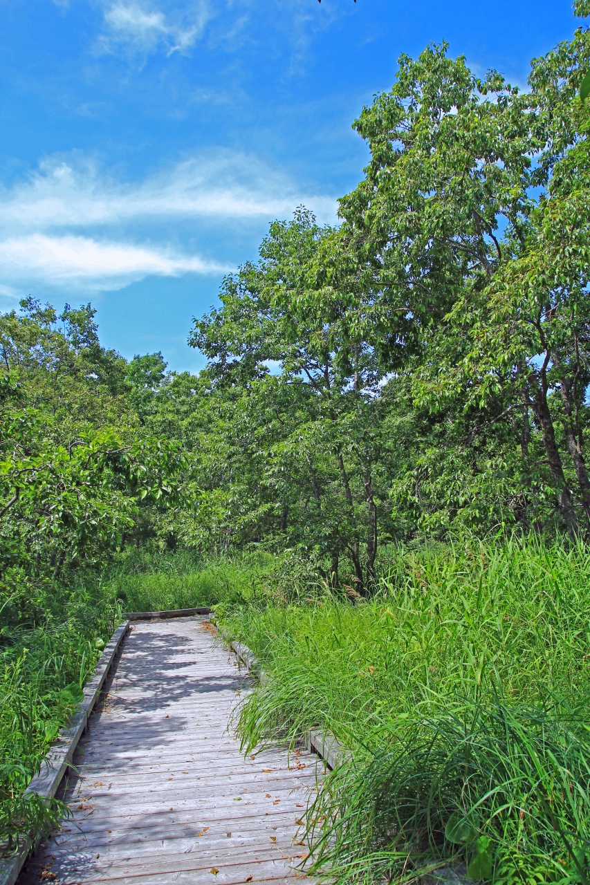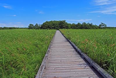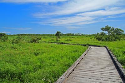 センターの先には湿原の中に向かって木道が伸びていて、湿原内に入ることができます。木道の遊歩道コースは30分から1時間程度、非常に爽快です。