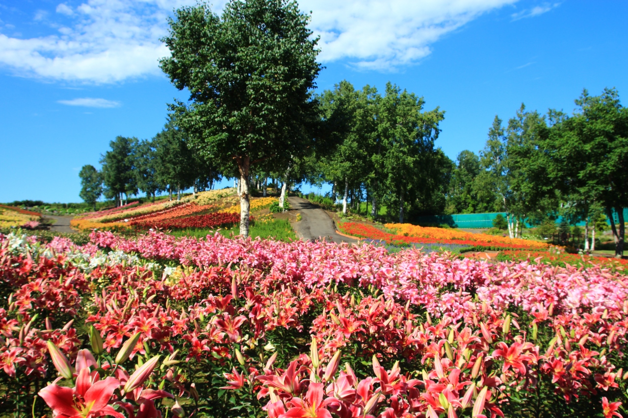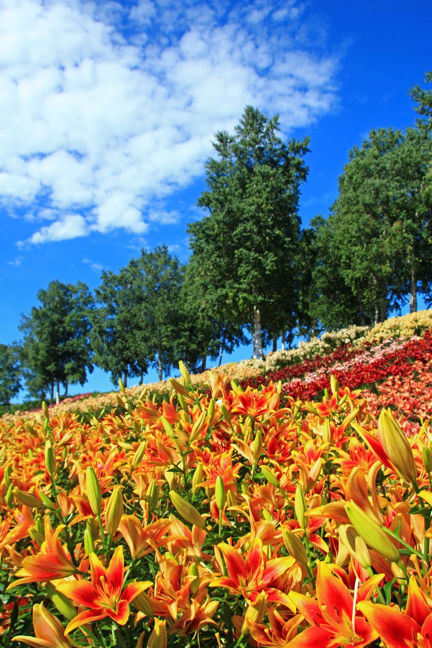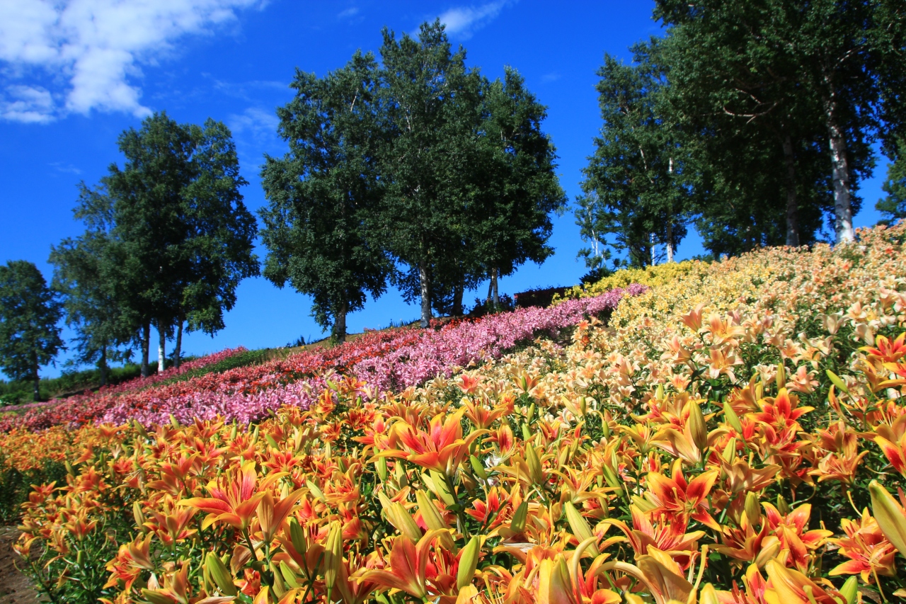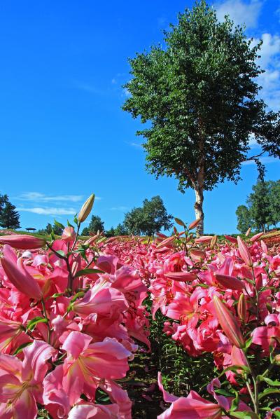 青空の下色とりどりのユリは本当に美しく、そして白樺の木が見事なアクセントになっていました。