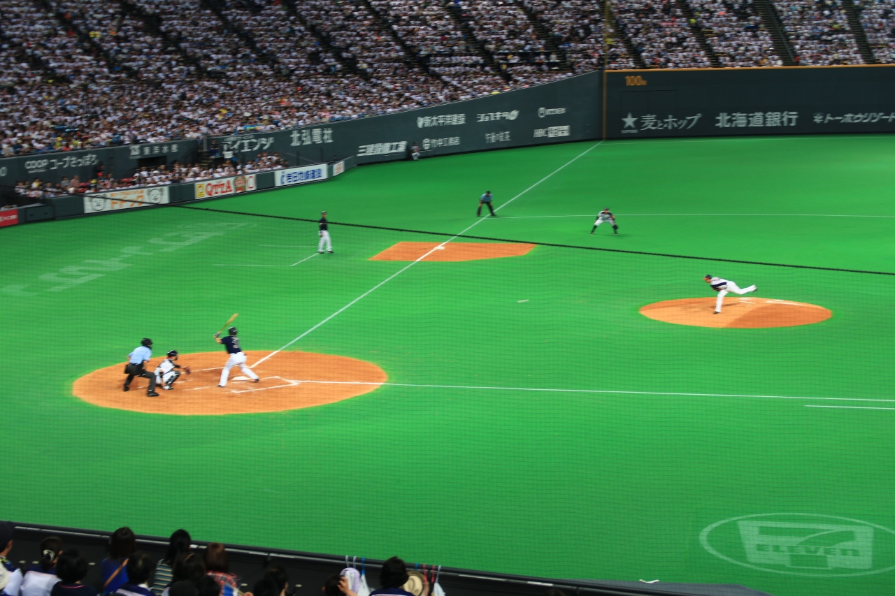 せっかく北海道に来ているのだからということで、札幌ドームの日ハム戦を見に行きました。時間がかかるとは聞いていましたが、札幌駅からは地下鉄東豊線で終点福住駅まで、そこから歩きますので、余裕を持った時間が必要です。