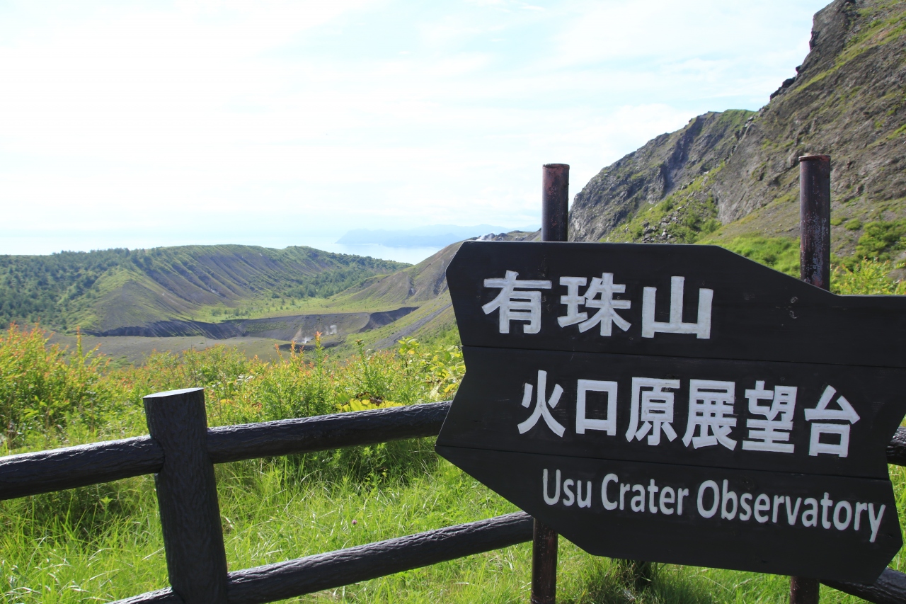 有珠山ロープウェイの山頂駅から徒歩で10分程度山を登ると有珠山火口原展望台に着きます。展望台からは、今も噴煙を上げる火口のほか、有珠山、洞爺湖、昭和新山、更には噴火湾に面した室蘭の街並みまで見えます。