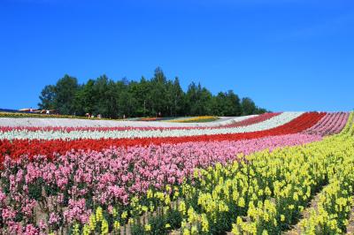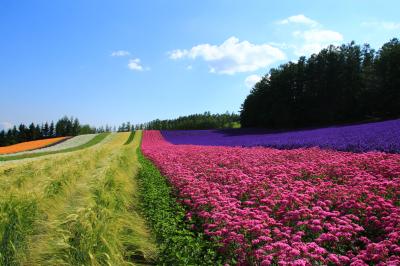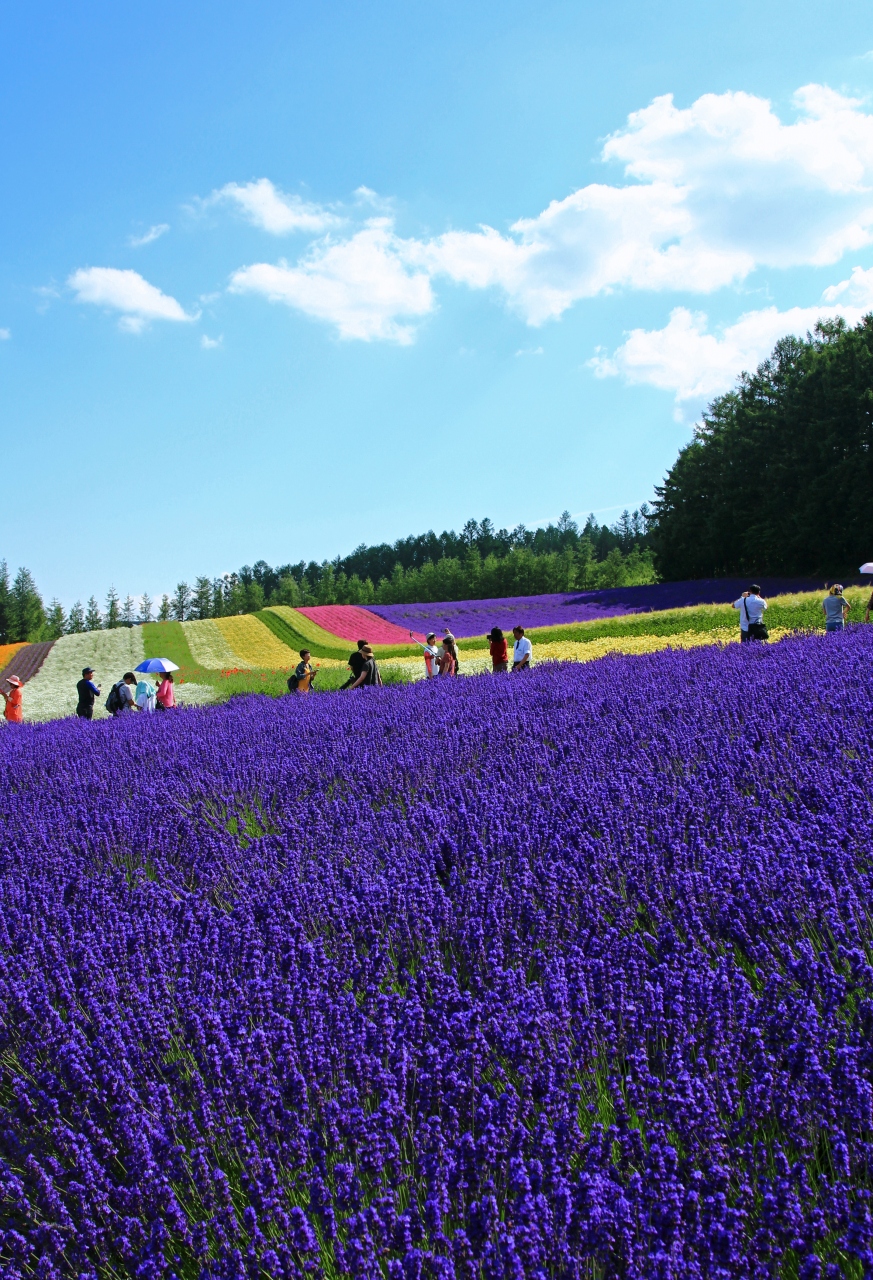 深い紫色のラベンダーを中心として色とりどりの花畑が並ぶ光景は、TVや雑誌などで一度は見たことがあると思います。