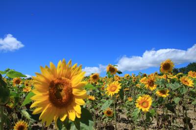 広大な敷地にひまわりを植えてありますが、見ごろは7月末から8月初めが一番良いと思います。自分は、7月末と8月半ばに行きましたが、その中間(8月1日前後)が一番良いかもしれません。