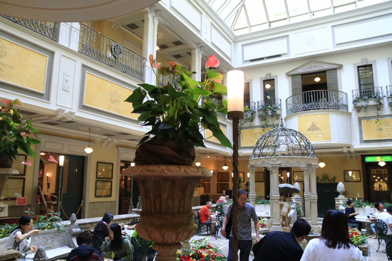 シングルで一泊利用しました。室内はアンティーク調の家具で統一されており、風呂とか少し使いづらい部分もありますが、全体的に良い雰囲気です。ホテル内に入るとロビーに巨大な吹き抜けがあり、室内庭園とテラスがあります。朝食はこのテラス周囲のビュッフェレストランで食べますが、質・量ともに満足できました。