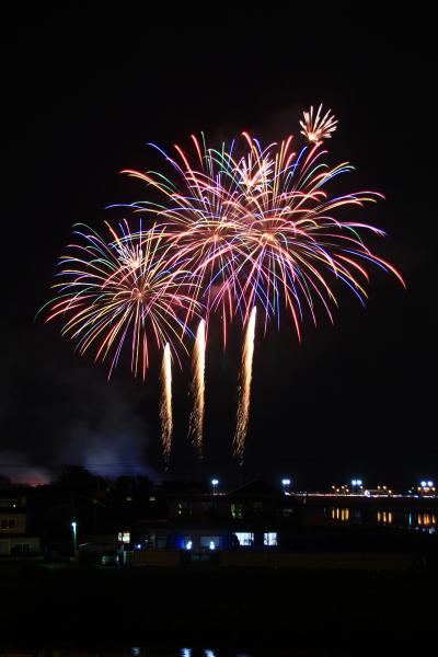 こちらはどんぱくほどの目玉はありませんが、繁華街から離れている分、人出もそれほど多くなく、河川敷に椅子や茣蓙を敷いてゆっくりと鑑賞できます。