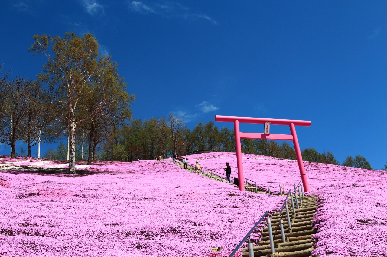 北海道では桜(特にソメイヨシノ)は少ないですが、芝桜の名所はいくつかあります。