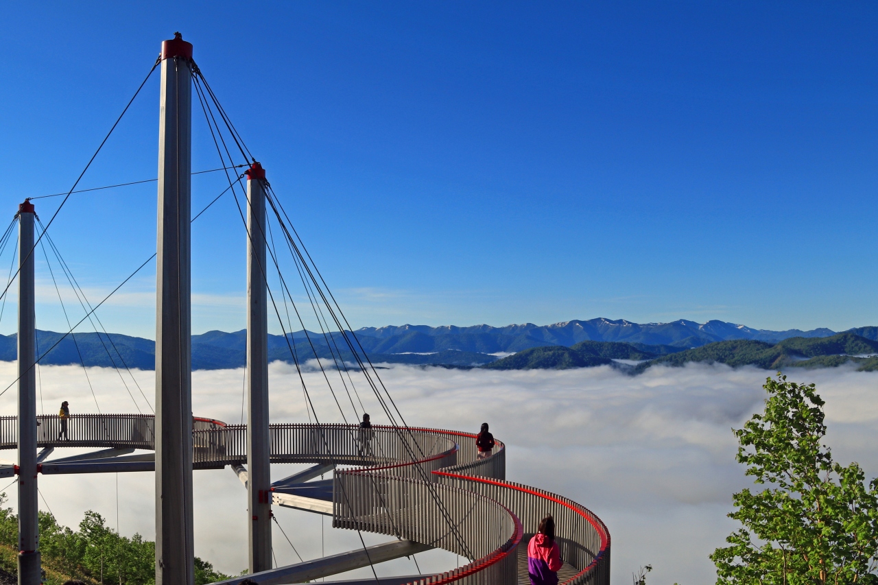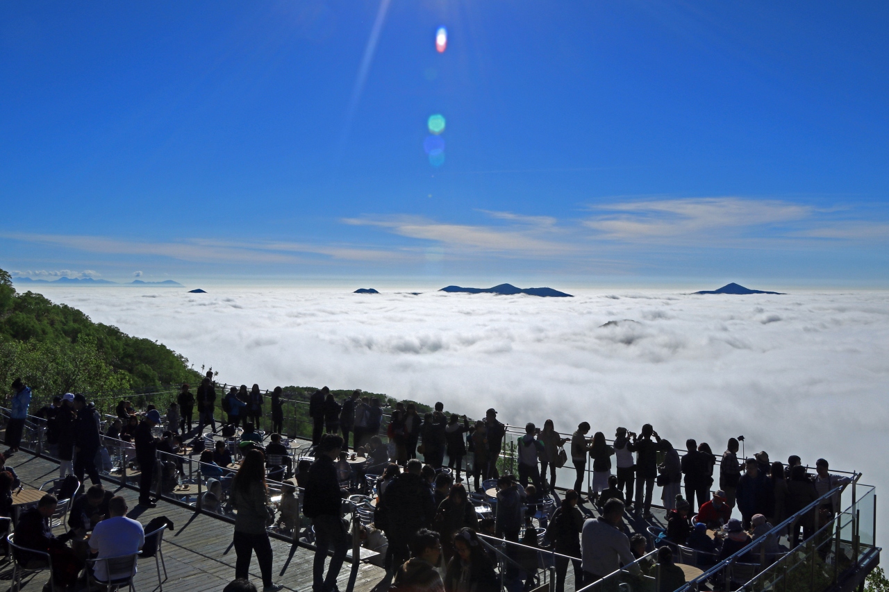 その後、雲海ウォークやテラスを回ったりしながら2時間。朝の7時には雲もすっかりきえて、あとは晴天になりました。