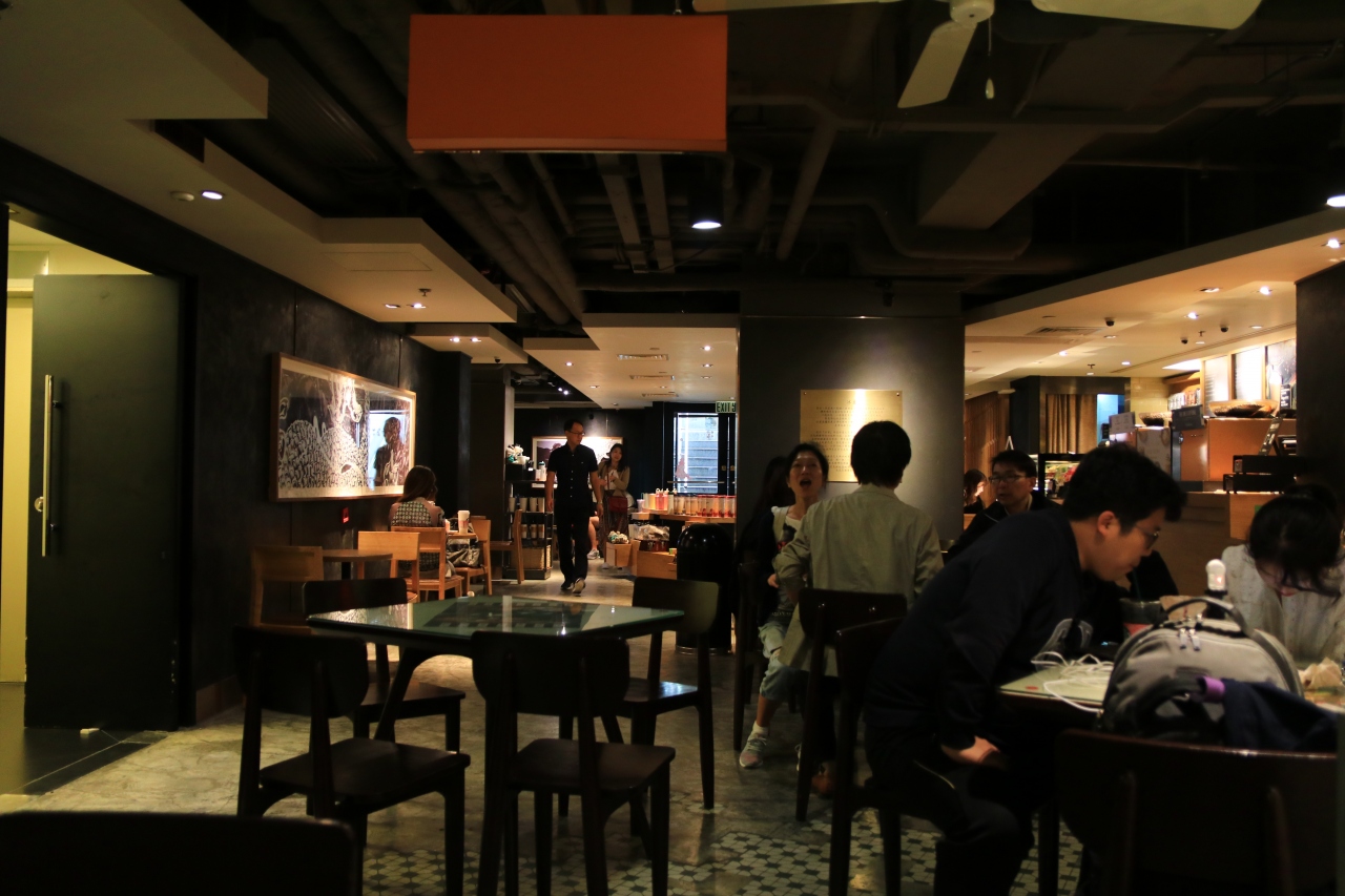 中は、昔の香港にあった喫茶店の看板やアンティーク家具などを配置し、レトロな造りになっています。スターバックスなので、基本的なメニューは普通の店と変わりませんが、エッグタルトも置いてあり、限定?のお土産なども売っています。