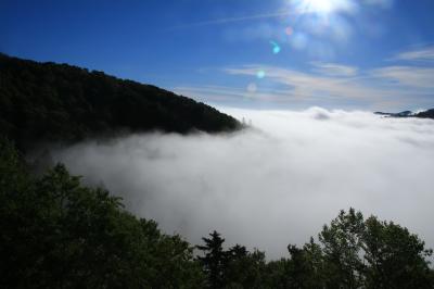 この日の雲海は太平洋型という雲海だそうで、太平洋で発生した動きのある雲で、上空は何もなく晴天。雲海の中でも一番美しい型です。雲海ガイドの人も、ここまできれいに見えるのは年何度もないそうです。