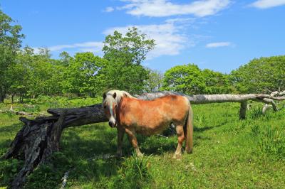 ただ、このあやめが原は植生保護のため、馬を放牧しており、この季節の新緑と相まって非常にきれいでした。