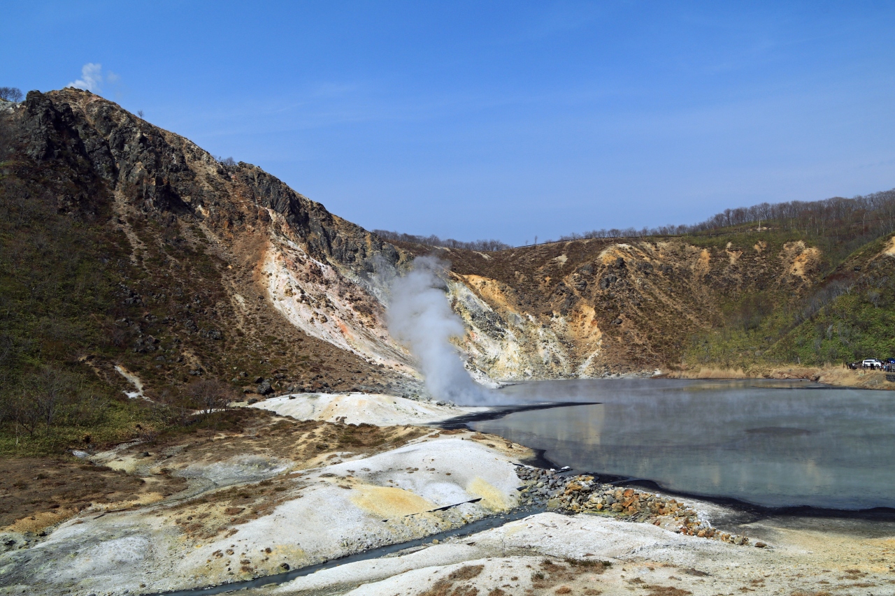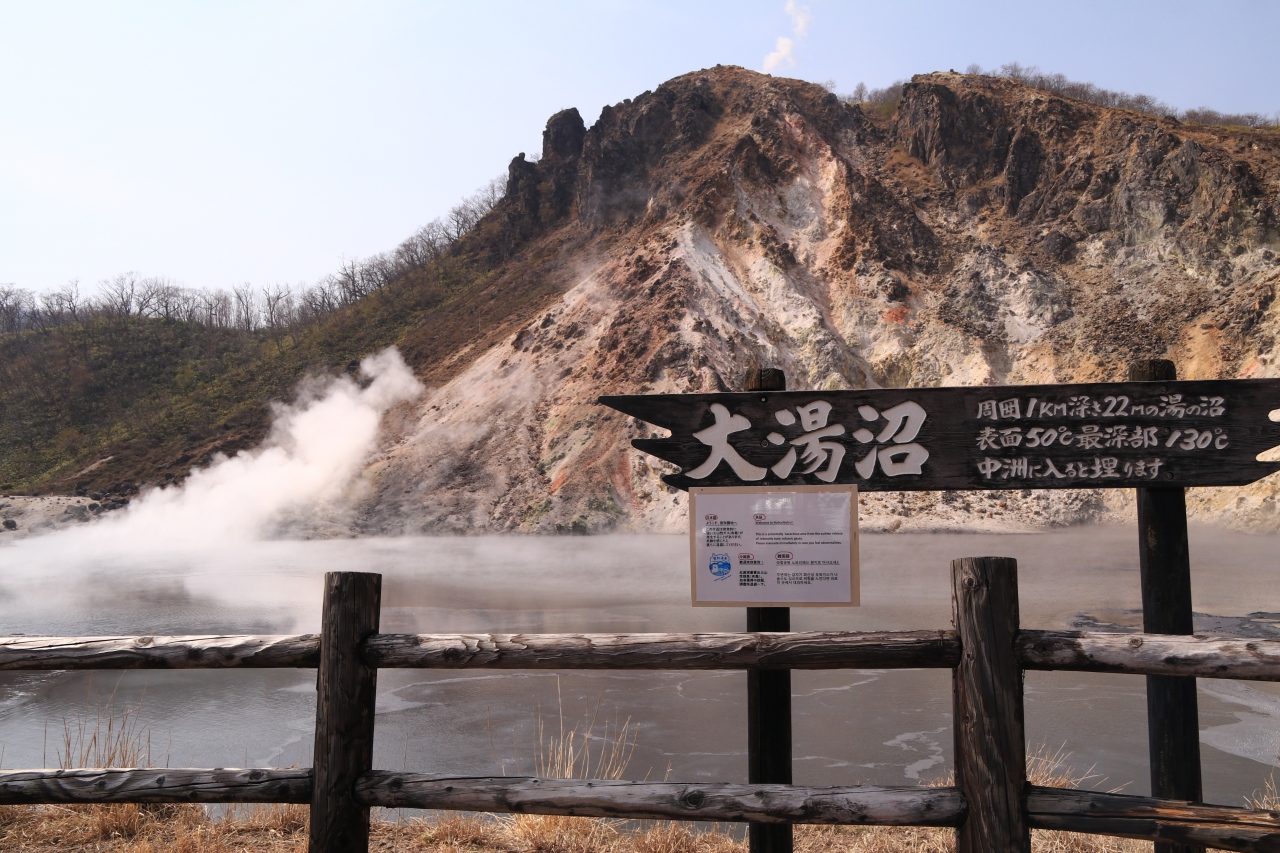 本題の大湯沼ですが、結構大きな池ですが、温泉そのもので、あちらこちらから湯気が上がっており、硫黄のにおいが立ち込めています。ここからも温泉を引いているようなので、登別温泉の湯量の多さがわかるというものです。