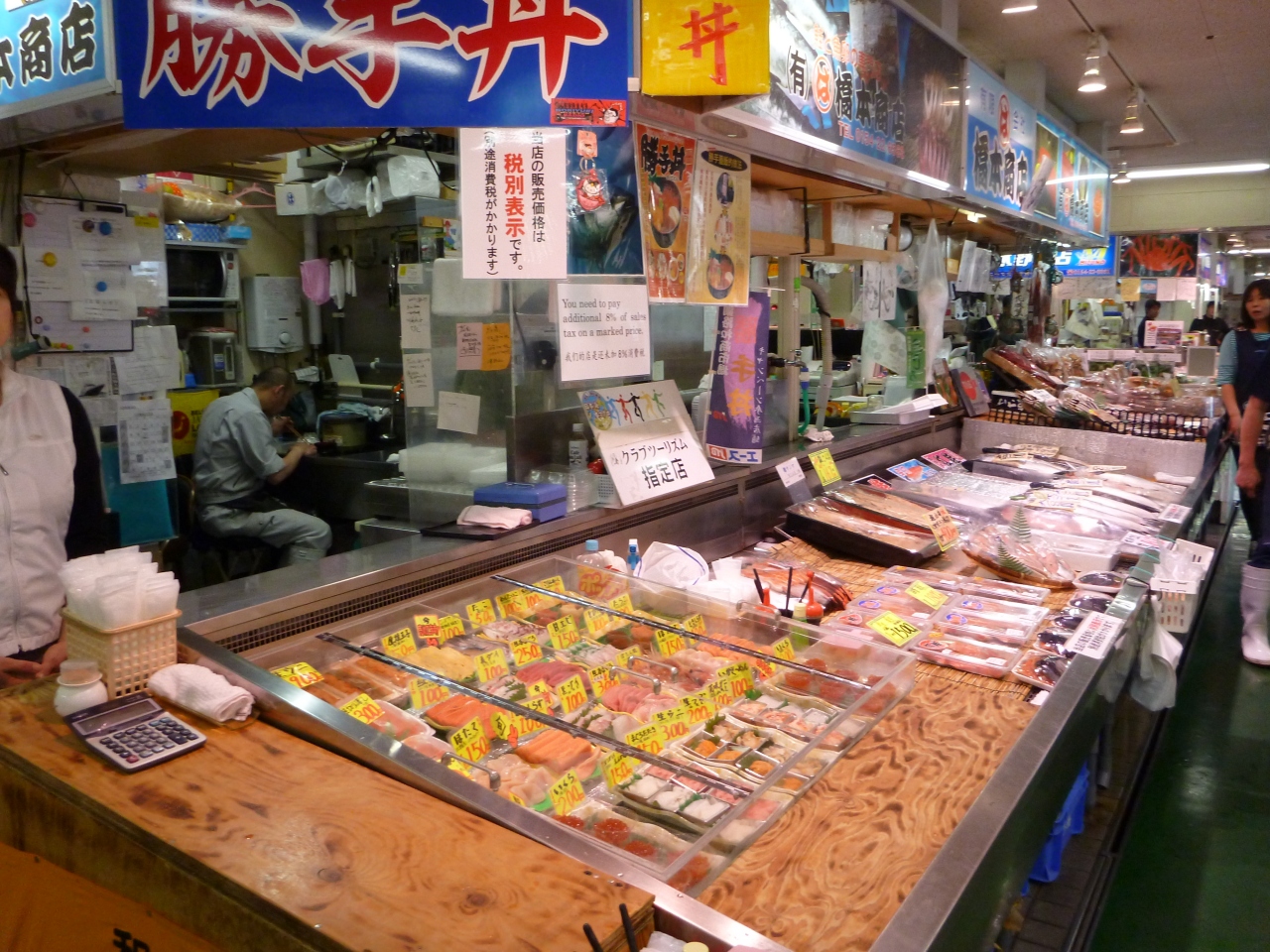 有名なのは勝手丼で、市場の店先から刺身を注文して、どんぶりライスにもって食べます。ただ、値段は高く、正直釧路に住んでいるものからすれば、スーパーのほうがもっと良いものを安く買えます(笑)。