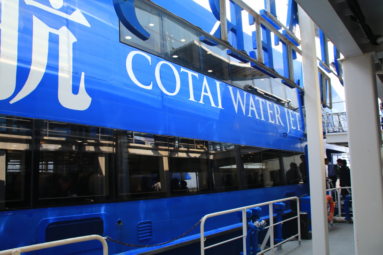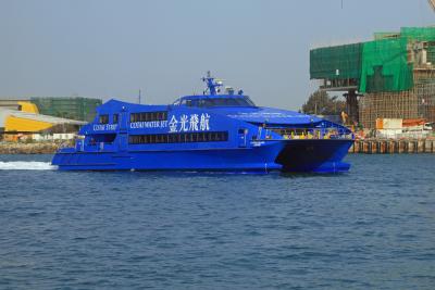 香港からマカオまでは船で行きますが、青色の空中翼船が金竜飛航(コタイジェット)です。