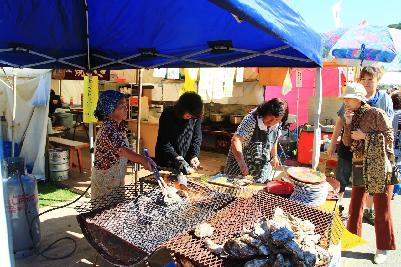 本来の牡蠣祭りは公園であるほうのようですが、漁港のほうでも市場が中心となって大きな催しがありましたので、実質2か所開催のようになっていました。