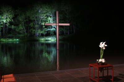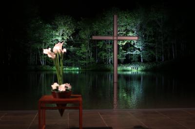 トマムリゾート内にある教会ですが、有名な建築家に設計してもらった庭園があるということで、一種の観光スポットになっています。通常の時間帯は教会として結婚式等が入っていますが、朝6時半~7時15墳までと夜8時半~9時15分までは一般に公開されます。