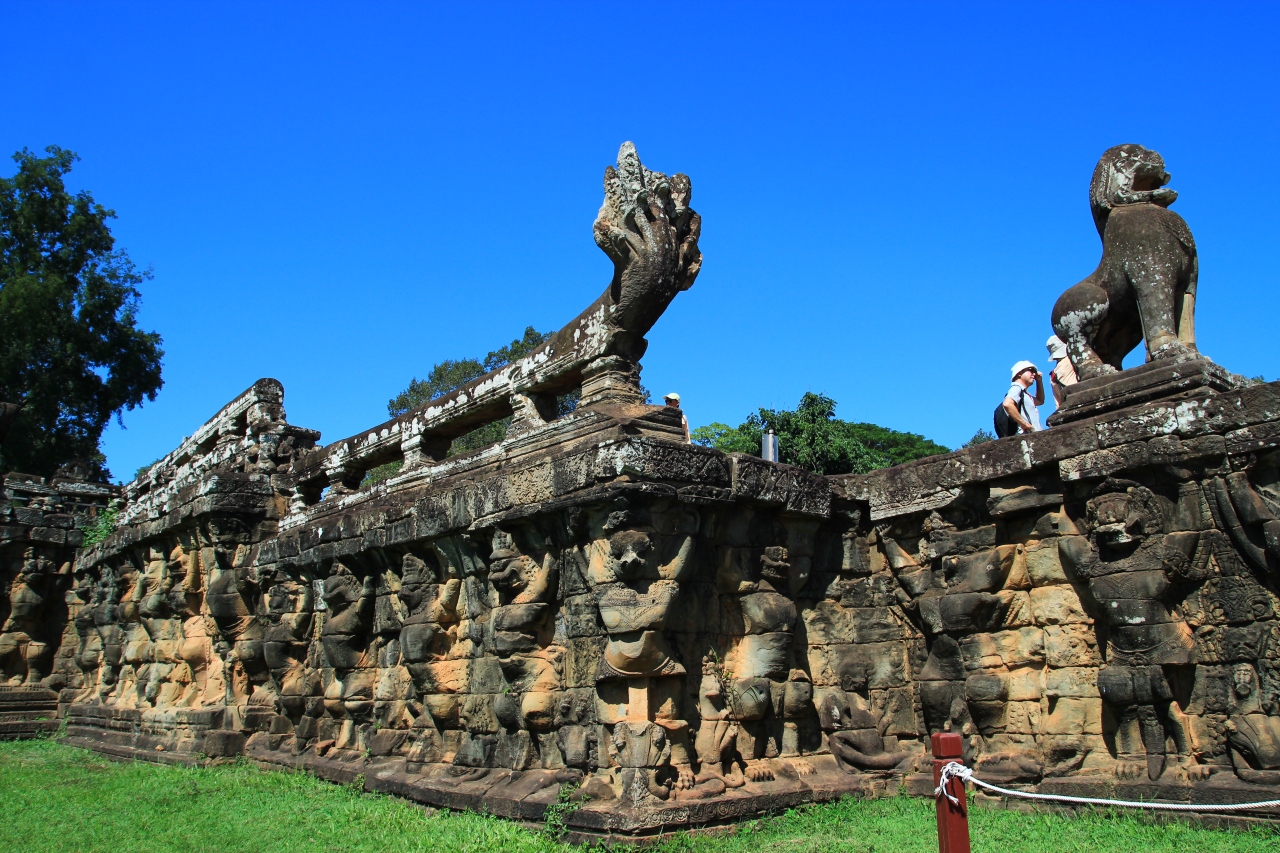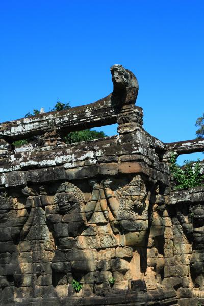 テラスを支える支柱が象ですので、象のテラスと呼ばれていますが、そのほかにも猿や鶏といった神話上の動物が様々に彫られています。