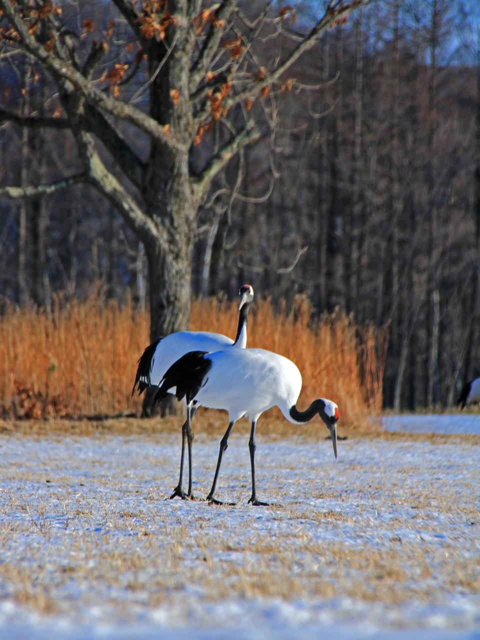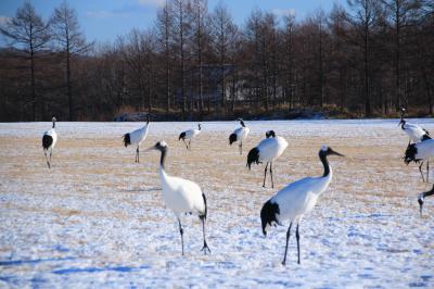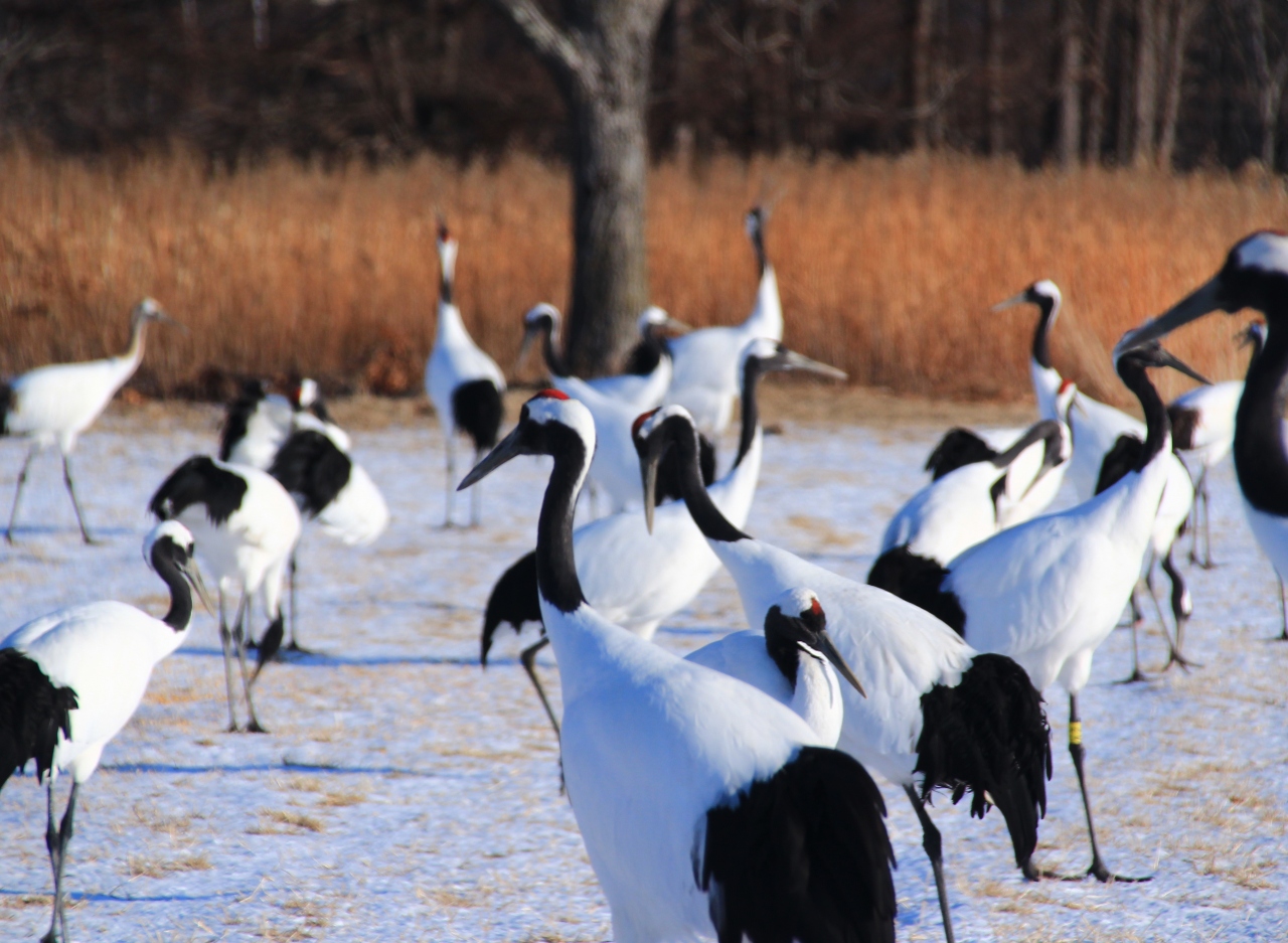 夏時期に行くと何もありませんが、11月頃から給餌始まり、付近が雪に閉ざされる12月中旬くらいになると、多くの丹頂鶴が集まってきます。