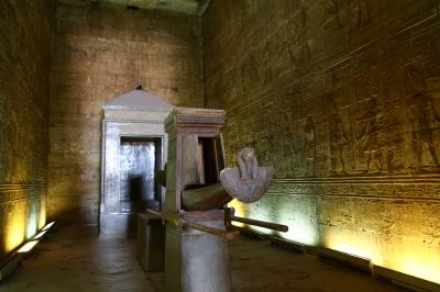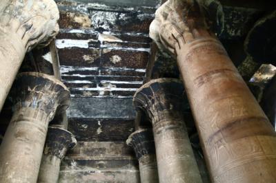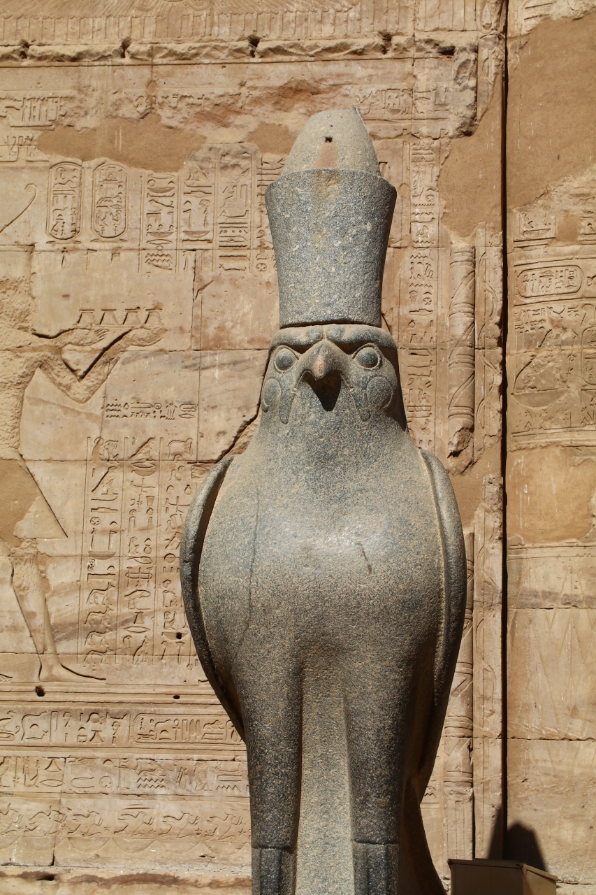 ご神体はハヤブサの神であるホルス神で、今でも4体のハヤブサの像が残り、保存状態も良好です。内部は過去に火事があったのか、煤けたところもありますが、壁画もかなり良い状態で残っています。